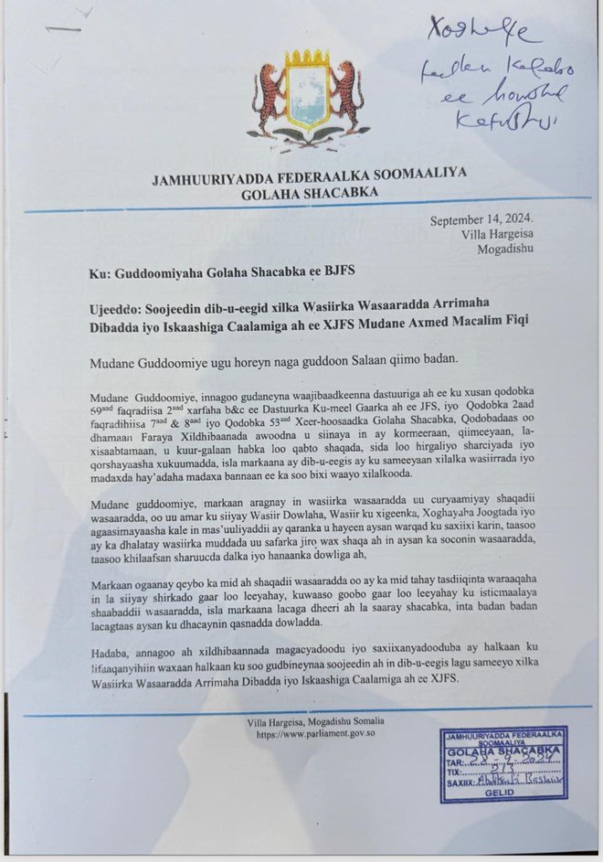 The future of Minister Ahmed Macalin Fiqi now rests in the hands of Parliament. Every meeting, every speech, every vote will be scrutinized. This is not just another motion—it’s a battle for the soul of Somali politics.