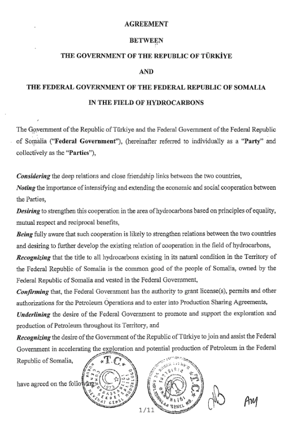 Text of the hydrocarbon agreement between Turkey and Somalia.