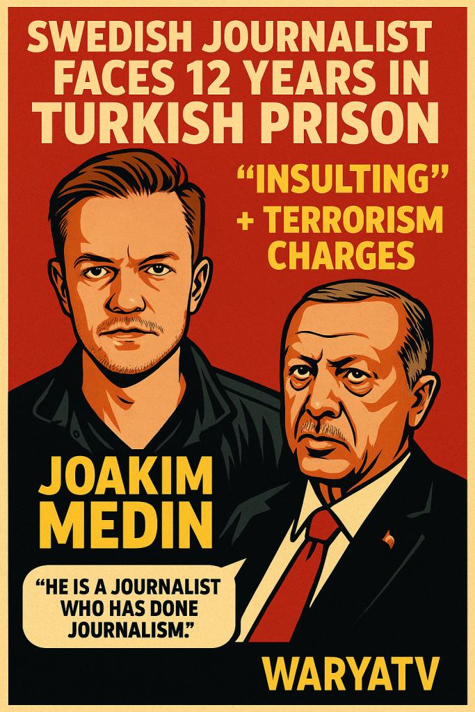Recep Tayyip Erdoğan’s regime has once again proven that journalism is a dangerous profession in Turkey — especially if it dares to expose dissent. The latest victim? Swedish reporter Joakim Medin, who now faces up to 12 years behind bars on charges that are as politically charged as they are absurd.