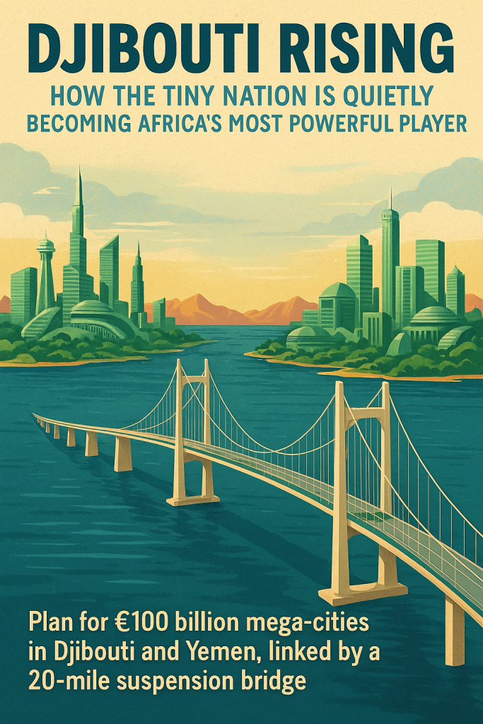 Djibouti’s boldest plan yet—a £100 billion mega-city initiative with Yemen, linked by a 20-mile suspension bridge—is more than a dream. It’s a signal. A signal that Djibouti sees itself as a connector between continents, where Africa and Asia converge, where renewable energy, green cities, and futuristic logistics become the new normal. The project has already captured imaginations globally. Whether or not it fully materializes, Djibouti has already declared its ambition.